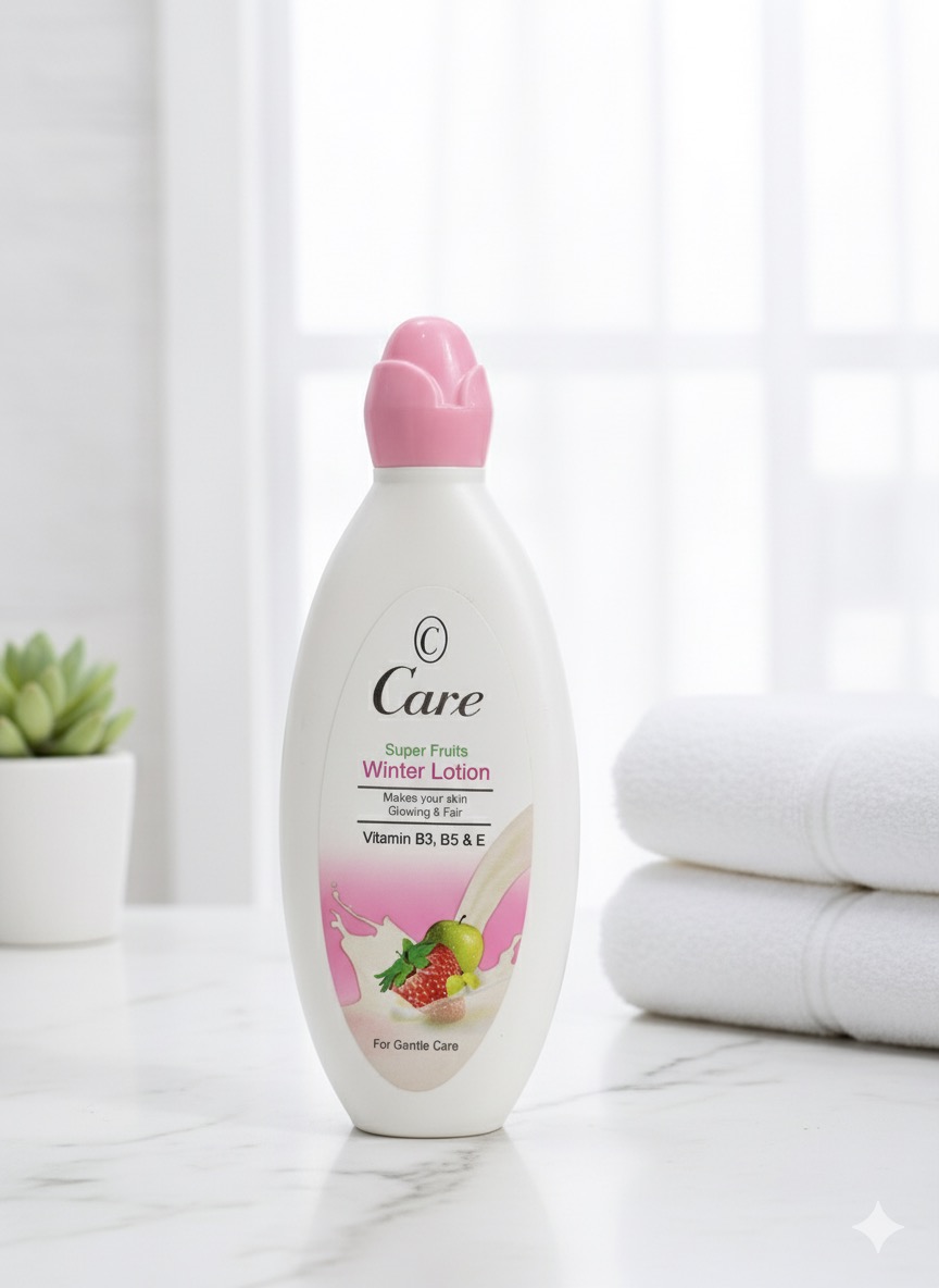 Embrace the winter season without dry, dull skin with the Care Super Fruits Winter Lotion. Specially formulated to provide intensive care during colder months, this luxurious lotion delivers deep hydration and nourishment, leaving your skin soft, radiant, and fair.
